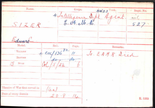 From his medal index card it appears he was an agent for the Intelligence Department before joining the East African Mounted Rifles.