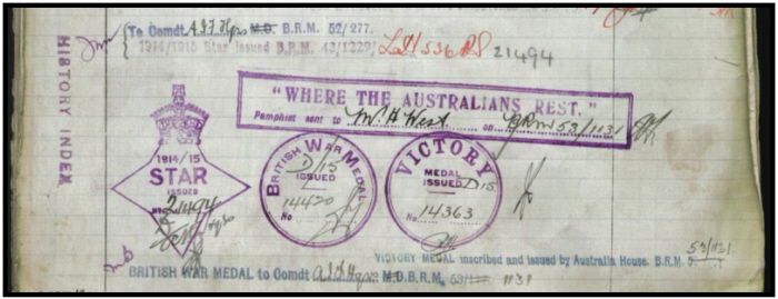 He enlisted in Liverpool, New South Wales on 31st December 1914 giving his age as 21 years 2 months, next of kin his father H.West of Botesdale. He was 5 feet 7 inches (170.2 cm) tall, chest 33.5" to 39.5" (85.1 to 100.3 cm), grey eyes, light brown hair. Sadly his weight is unreadable. His religion was Presbyterian
