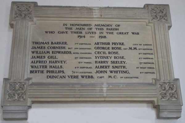 This tablet is 46 cm high by 710 cm wide. Made by Messrs Mossford of Bury St. Edmunds, costing £28.10s. Unveiling details not found.