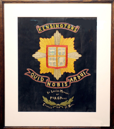 Inside the village hall is a further memorial, in the form of a glazed embroidery memorial to Private Arthur Pryke.