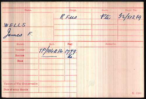 James Francis Wells was born on 5th April 1881 in Barnham (Thetford Q2-1881 4B:401), baptised in St Petronilla, Whepstead on 19th June 1881, son of James
