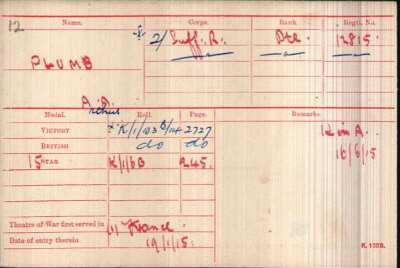 Arthur Alfred PLUMB was born in 1894 in Worlingham ( Wangford Q2-1894 4A:935) son of John and Susan E PLUMB (née ARTIS)