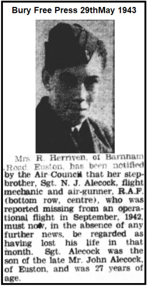 Norman Alecock was born in Euston on 12th August 1915,(Thetford Q3-1915 4B:542) son of John and Louisa ALECOCK (née BALAAM).