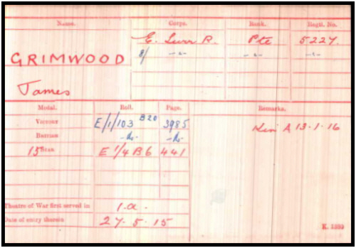 He enlisted in Honington. Despite the surname HUBBARD being used in 2 census, he served as GRIMWOOD.