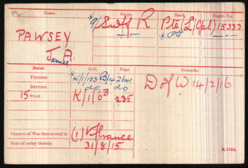 No.15333, Lance Corporal, James Arthur PAWSEY