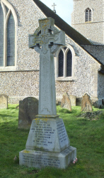 FRECKENHAM war memorial stands just inside the churchyard of St. Andrew's, Freckenham. It takes the form of a Celtic cross, eight feet high on a tapered base