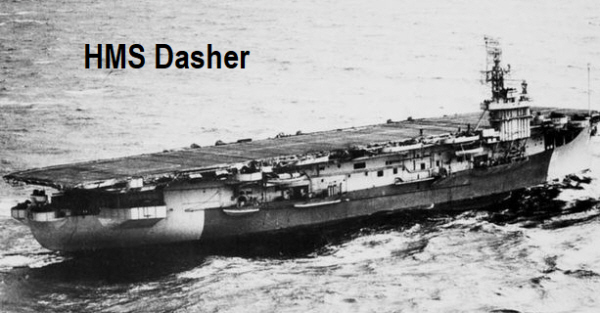 HMS Dasher was originally a passenger/crgo ship built in Pennsylvania, named the RIO DE JANEIRO. Requisitioned by the US Navy she was converted by a