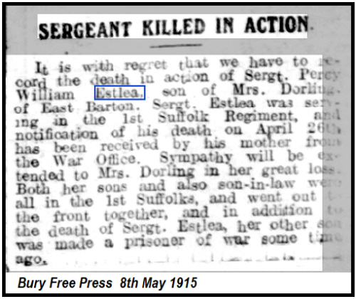 Percy William Estlea was born in Old Newton (3rd qtr 1890 Stow 4a:748) son of William and Jane ESTLEA (née SCOTT )