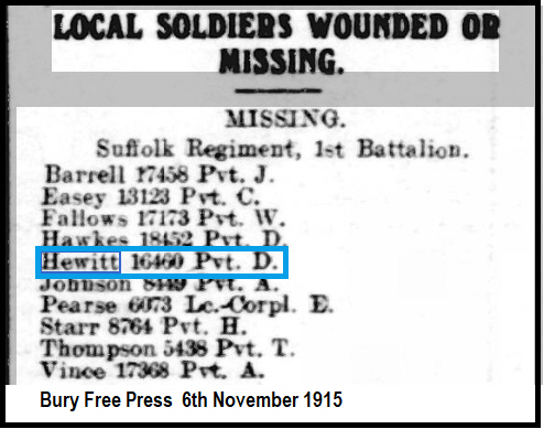 David Hewitt birth registration not identifed, son of Charles and Mary HEWITT (née ) of Frizzles Green, Great Saxham