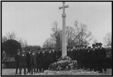 On Sunday afternoon there was unveiled at Great Thurlow a war memorial in the form of an octagonal pillar surmounted by a cross, resting on a base of square design. It was designed by the Rev.W.A.Wickham of Ampton, and has been erected on a site that is really part of the grounds connected with the Village Reading Room. Standing as it does some feet higher than the adjoining roadway, and near the junction of four roads, the position is a most suitable one.