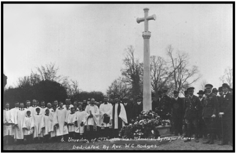 Then came a procession to the memorial which was unveiled by Major P.Carew, Adjutant of the 5th Suffolks Territorials, who was thanked by Lt.F.Ryder......