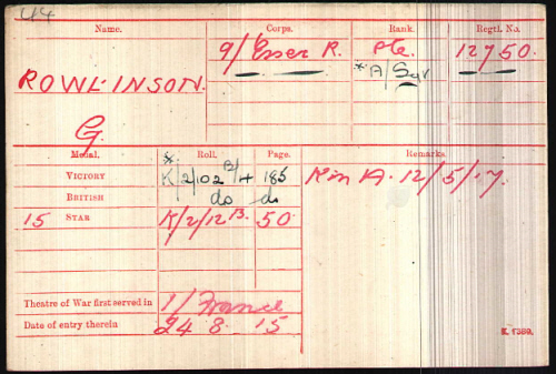 No. 12750, Sergeant, George ROWLINGSON