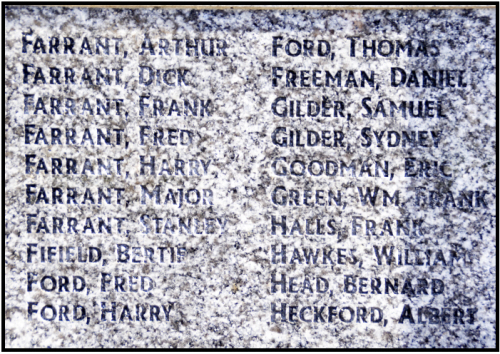 1 man in the Boer War, 144 in the Great War of 1914-1919, 38 in 1939-1945, 1 in N.Ireland and civilians who died through enemy action