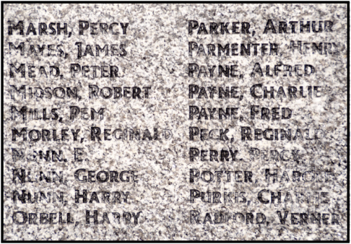 three stepped Portland stone base. Inset into the plinth are eight polished granite tablets bearing the incised and black painted names of those who