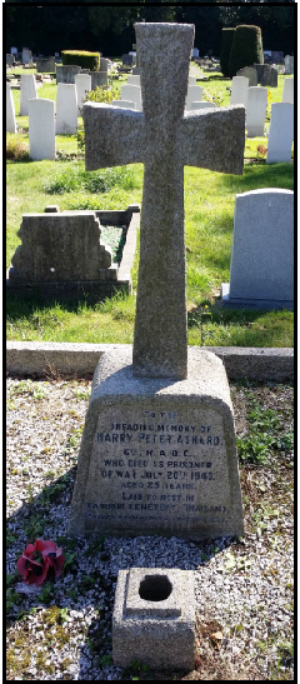 From the writing on his photo here it seems he was known in the family as Peter. His parents had the H A Ashard, Confectioners and Tobacconists at 23 Queen Street for the best part of fifty years. He attended Haverhill Secondary School and on completion of his education he left the town to take up employment at Shire Hall, Bury St Edmunds where he followed up his natural bent for mathematics by joining the accounts department. Later he was employed in the Treasury Department of the Wanstead and Woodford Borough Council. In 1939, he passed the Intermediate Examination of the Institute of Municipal Treasurers and Accountants held in January of that year. Over 500 entered for this national examination with a pass rate of only 20%. Harry came third overall and was awarded the bronze medal. In the 1939 register his father Harry A [30/5/1882] tobacconist/confectioner and mother Edith T [13/9/1889] were at 23 Queen Street, Haverhill. They moved later to Clacton on Sea. He married an Ilford girl, Hilary Margaret SANDERSON, in January 1941 (Newmarket Q1-1941 4A:2671). She seems to have married Ronald J DAWSON in 1949 in Ilford. Harry's PoW card has his wife at 42 Van Vaughan Gardens, Ilford. |