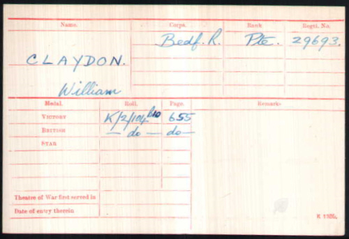 William Walter CLAYDON was born in Haverhill (Risbridge Q2-1889 4A-654), son of Walter and Clara CLAYDON (née EVANS).