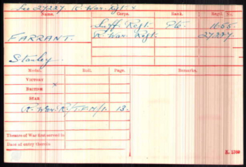 Stanley FARRANT was born in Haverhill at 11 Bull Lane, Camps Road on 19th October 1896 (Risbridge Q4-1896 4A:756), baptised on 7th January