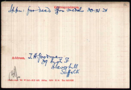servant (Government Board of Education at 362 King's St., Hammersmith, next of kin his father at 39 High Street, Haverhill.