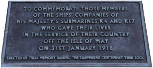 only 2 photos found, both when K-4 had run aground at Whalney Island in 1917 plaque on monument in Anstruther harbour photo: Commonwealth War Graves Commission