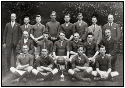Samuel MOORE was born on 22nd February 1910 in Haverhill (Risbridge Q2-1910 4A:892) son of James and Hannah MOORE (née TURNER). 1911 census...Aged 1, he was at 4 Spring Cottages, Sturmer Lane, Haverhill with his father James MOORE [38] farm labourer born Withersfield; his mother Hannah [34] finisher of trousers, born Wratting; sister Lillie [9] born Withersfield; brothers James [11] born Withersfield, Alfred [7], Arthur [5] and William [3] all born in Haverhill. Samuel attended the local council school and became a well-known sportsman in the town. Below is the Haverhill Rovers FC team (1927–28) that won the Haverhill & District League Cup. It is believed that Samuel is standing in the back row, third from left. |