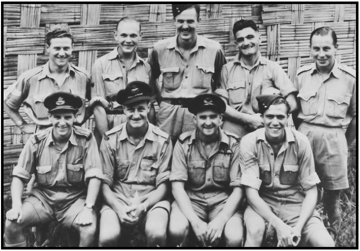 The regular crew who appear in this photo are: Back from left; F/Sgt Glynn, F/Sgt Baines, Sgt Dow, F/Sgt Elliott. F/Sgt Popple Front from left F/O Willis, F/O Lough