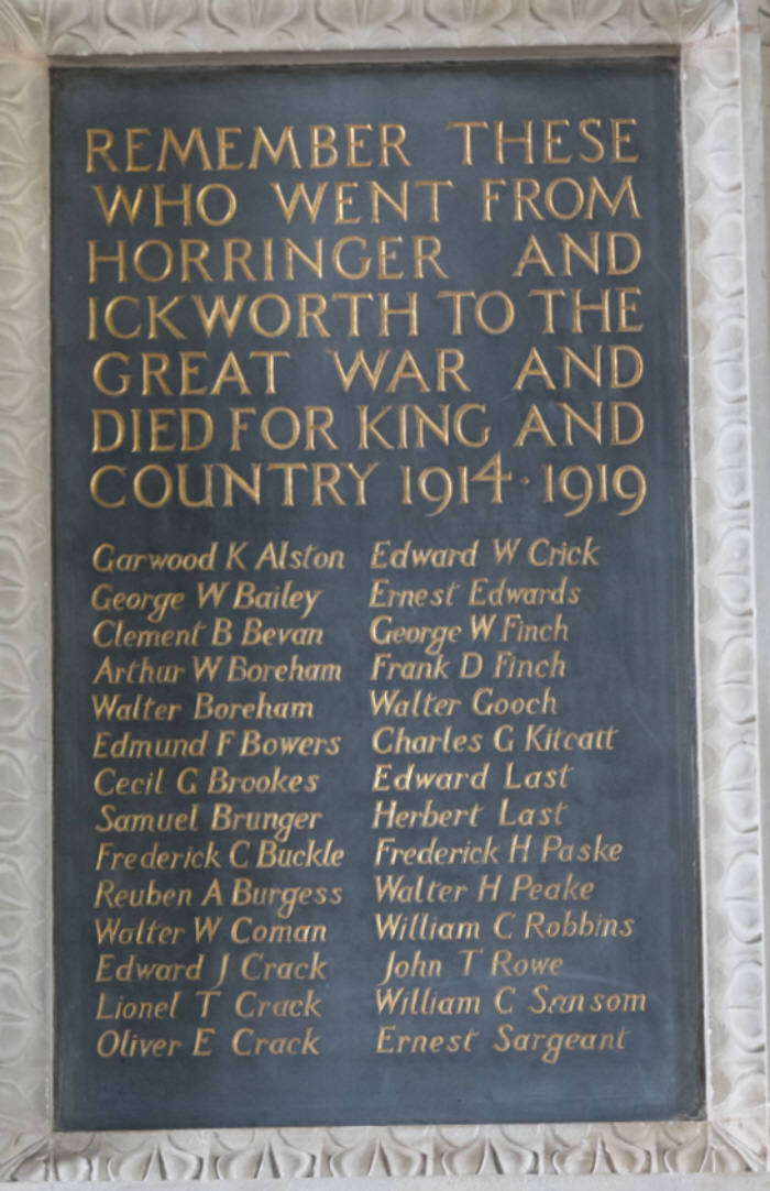 To the eternal memory of the men of HORRINGER and ICKWORTH who died in the service of their country