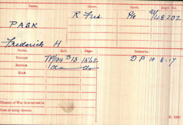No.48202, Private, Frederick Henry PASK