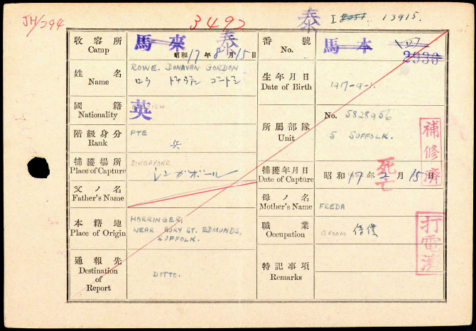 He was captured on 15th February 1942 at the surrender of Singapore to the Japanese He died of dysentery at Kinsayoke Camp. Originally buried in Kinsayoke, he was re-interred in 1946