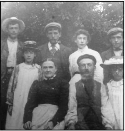 Sharman family around 1900, Horace back left,back centre Sam and Emma Barton, seated David and Hannah Sharman with other children< - photos courtesy Damon Barton of Mildenhall