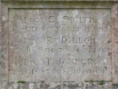 PTE E SMITH 1st GLOSTERS 23.II.1915...PTE R DILLON 1ST R.SCOTS 4.IV.1915...PTE T.JASPER, 2ND GLOSTERS 30.VI.1915