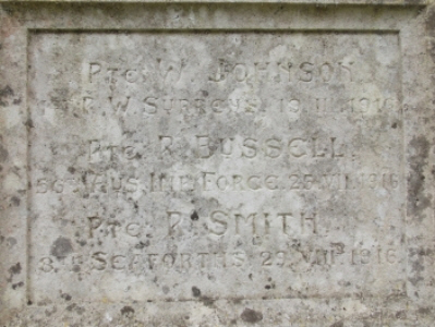 PTE W JOHNSON, 1ST R.W.SURREYS 19.III.1916...PTE R BUSSELL 56TH AUS.IMP.FORCE 25.VII.1916...PTE R SMITH 8TH SEAFORTHS 29.VIII.1916