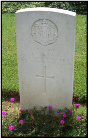 He was killed during the retreat down the peninsular. The battalion were surrounded by the Japanese at Sengarang on25/26th January, after having left Batu Pahat and then been ordered to re take that town and hold for 2 days. From then on scattered parties of men managed to break out and reach Singapore, 70 miles away. 30 of the battalion were killed that day, and Edmund is one of only three who has a known grave, the rest are commemorated on the Singapore Memorial, which is in the cemetery at Kranji. |