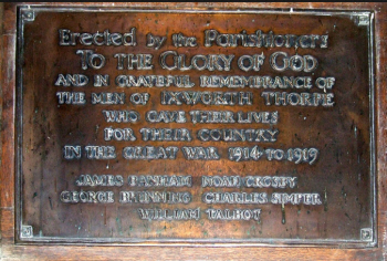 Erected by the Parishioners TO THE GLORY OF GOD AND IN GRATEFUL REMEMBRANCE OF THE MEN OF IXWORTH THORPE WHO GAVE THEIR LIVES FOR THEIR COUNTRY IN THE GREAT