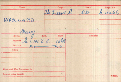 Harry Woollard was born in Kirtling in 1896 (Newmarket Q4-1896 3B:508), son of William Saunders and Annie WOOLLARD, (née SIMPKIN).The baptismal transcription has no dates.