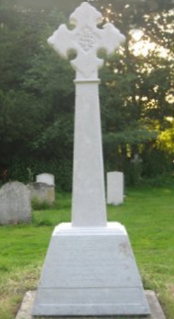 The memorial cross, situated on the south side of the church, to the left of the path to the church entrance. A Fleury cross on a tapered