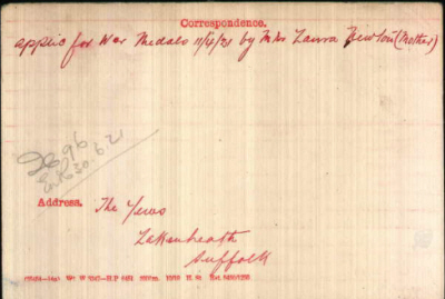1901 census... Aged 6, he was living at 36 Kings Street, St Lukes, London with his father- William T NEWTON [49] surgeon born Leighton Heath [sic], Suffolk; mother- Laura (née NEALE) [38] born St Lukes London; brother Frank W C [16]; sisters Lucy M [15], Grace L [13], Nina F [9]and Agnes D {7 months) all the children except Agnes born in London, Agnes recorded as Westcliffe on Sea 1911 census...John not yet found. His family at The Shrubberies, Lakenheath were father- William Thomas NEWTON [59] surgeon born Lakenheath; mother Laura [46] born London; sister Mary (Lucy M ?) [23] born London; sister Nina Frances [18] born London and sister Agnes Dorothy [10] born London The Army have his mother's address after the war as Mrs Laura Newton, The Yews, Lakenheath |