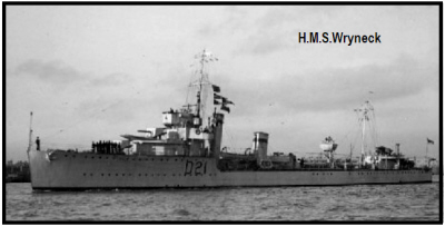 April 1917, launched on 13 May 1918, and completed on the last day of the war, 11 November 1918. Wryneck was put into Reserve during the economic crisis of the 1930s and laid up in Gibraltar. In 1938 she was selected for WAIR conversion to a fast escort ship at Gibraltar Dockyard. The work began in September 1939 and was not completed until March 1940. In April 1940, after sea trials, Wryneck was recommissioned for service with the new pennant number L04, and assigned to convoy defence duty based at Alexandria. In December she was detached to support military operations against the Italian army in Egypt. In January 1941 she resumed convoy defence duties, and in March formed part of the escort of military convoys taking British and Commonwealth troops to Greece as part of "Operation Lustre". In April, with the fall of Greece, Wryneck returned to help the evacuation of Allied troops. At 4am on 27th April 1941, the Dutch liner SS Slamat, with 211 crew and 500 Allied troops, which included Horace, Edward and other soldiers of the Royal Army Service Corps, left Nauplia Harbour. They were too late to escape an attack by German Stukas of Jagdgeschwader 77. The Slamat sank with the loss of 193 men. Of the troops on board, around 700 were rescued by the destroyers HMS Diamond and HMS Wryneck, both of which were later bombed and sunk (36.30 N 23.34 E), drowning most of the survivors of the Slamat. In all, there was just one officer, 41 seamen and 8 soldiers saved from this triple disaster, leaving a total death toll of 843 men. At about 13:15, an air attack by German Messerschmitt Bf 109 fighters and Junkers Ju 88 bombers[5] sank HMS Diamnd and HMS Wryneck within minutes. Wryneck launched her whaler, and each destroyer launched her three Carley floats. Survivors in the whaler set off east past Cape Maleas, towing two Carley floats and their occupants . In the evening the wind increased, causing the floats to strike the boat, reluctantly they were cast adrift. After 1900 hrs on 27 April the Vice Admiral, Light Forces, Henry Pridham-Wippell, became concerned that Diamond had not returned to Souda Bay and was not answering radio signals. Wryneck had been ordered to keep radio silence so no attempt was made to radio her. Pridham-Wippell sent the destroyer HMS Griffin to the position where Slamat had been lost. She found 14 survivors in two Carley floats that night, more floats and another four survivors in the morning, and took the survivors to Crete. The last living survivor from Slamat, Royal Army Service Corps veteran George Dexter, states that after Wryneck was sunk he and three other men were rescued by the cruiser HMS Orion. |