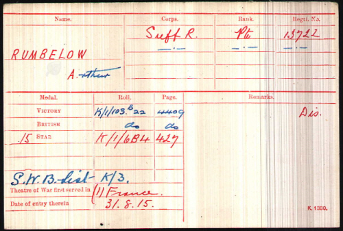 No.13722, Private, Arthur RUMBELOW