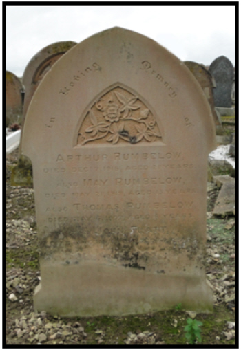 He served with the BEF in France from 31st August 1915 until 18th May 1916. In early 1916 he was in hospital in Etaples with pleurisy, but returned to his unit at the end of April. He received a penetrating shrapnel wound to his right thigh in May 1916 and was hospitalised from 18th May to 19th June 1916. The battalion were near Sint Jan, in trenches at Forward Cottage near the junction of the N37 and A19 NNE of Ypres. On 25th May 1916 he was diagnosed with TB . He was discharged on 18th July 1916 as no longer being physically fit for war service (Phthisis). He was 21 years old, stood 5 feet 8 inches (172.7 cm)tall, chest 33" to 35.5" ((83.8 to 90.2 cm). He gave his intended address as Pot Hall, West Row. His Army pension in 1917 rose to 27/6 per week (£1.37) He died in a sanitorium in Brighton and been brought home for burial. The Bury Free Press of 21st December 1918 reported:- WEST ROW MILITARY FUNERAL On Saturday the remains of Pte. Arthur Rumbelow, of the 9th Suffolk Regt., son of Mr.and Mrs.Rumbelow of Hillside House, West Row, Mildenhall, were interred in the Baptist Chapel burial ground there with military honours, the firing party being from soldiers attending a local signalling school.............The deceased, who was only 21 years of age, enlisted with many others from the village, in Kitchener's Army in September 1914, and died on the 7th inst at the Royal Sussex County Hospital, Brighton, from the effects of poison gas, to which he fell a victim whilst engaged on signalling duty with his regiment in France.