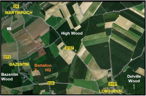 Battalion HQ 1st/2nd August 1916 and the war memorials at West Row and Woodditon click here to go to the Commonwealth War Graves Commission website for full cemetery/memorial details |