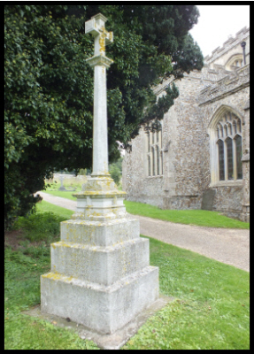 On the left hand side of the path to the church of St.Peter in Brookside, Moulton is a Portland stone cross pattee ( the cross on a three stepped base).
