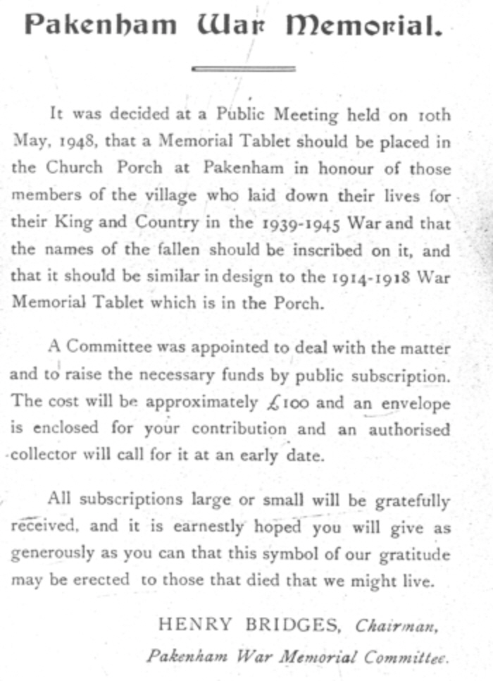 PAKENHAM WAR MEMORIALS