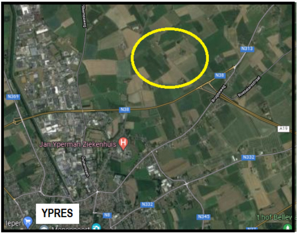 The battalion were just NE of Ypres (roughly at the junction of the N38 and A19) and had 16 killed that day, only three have an identified grave