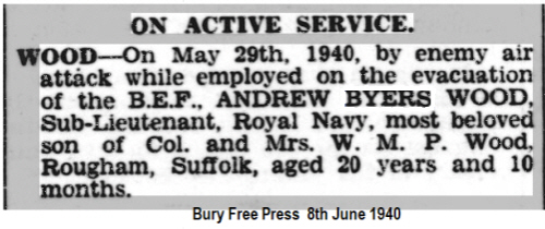 and Dorothy Margaret WOOD (née BYERS). His father had been in the Indian Army for some time. In the 1939 register his parents were at Blackthorpe Nouse, Rougham. |