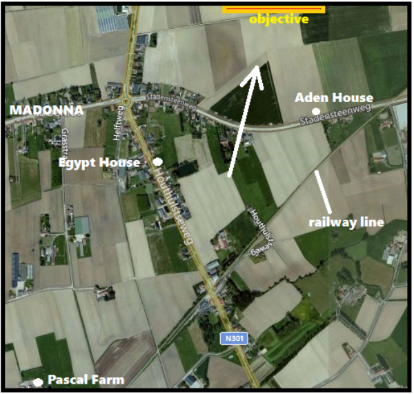 He arrived in France in February 1915 and was gassed in the Ypres Salient in May and from then on he suffered several bouts of ill health, frequent hospitalisations with pneumonia,influenza, pleurisy and tonsilitis.By the end of 1915 he was recovering in England and in February 1916 he went to Pembroke College, Cambridge on an officer cadet course. Commissioned on 6th July 1916 he was discharged from the Canadian Army, now aged 32. He gave his intended address as Ronnock Lodge, Reigate which seems to be the place he met his wife to be. His brother Edward Weir ABRAHAM enlisted in the Canadian Army (no.16739) the same day as him and was also commissioned in February 1916, into the Cheshire Regiment. He survived the war and later returned to Canada In 1920 both his mother and his widow applied for a memorial cross, mother giving her address as 903 Collinson Street, Victoria, British Columbia, and his widow at Pound Hall.Long Melford. His mother was successful, his widow's claim was denied. At 5 feet 10 inches tall he would have stood out somewhat in the battalion which was a Bantam Battalion, originally for men between 5ft and 5ft 3 inches tall, albeit the standards were relaxed as the war wore on. In late October near Houthulst north of Ypres in the course of the battle the battalion was nearly wiped out. The War Diary for 22nd October 1917:- "At 5.35 a.m. the Battalion attacked, in conjunction with another Battalion of this Brigade on our left and 34th Division on our right, from the line ADEN HOUSE (V.1.c. 55.35) to ANGLE POINT (U.6.a.6.4), the final objective being on a line running from SIX ROADS (V.1.b.3.7) to V.1.b.3.8. The first objective running from V.1 central to the road junction at V.1.a.50.15 was reached with slight casualties. From this point however the resistance was more stubborn and very heavy rifle and machine gun fire was experienced from both flanks. All the officers, with one exception who was acting as liaison officer with 34th Division on our right, and a large proportion of N.C.O.s and men were either killed or wounded and the Battalion was unable to make further progress. The survivors who could be collected, that is about 50 other ranks under a Company Sergeant Major, withdrew to our original line, and later in the morning were relieved by two companies of the 20th Lancashire Fusiliers who had been in reserve, and withdrew to the vicinity of EGYPT HOUSE (U.12.b.2.9). That evening the Battalion moved back to PASCAL FARM (U.13.c.5.2.) and the following day were withdrawn from the line. The casualties sustained were: Officers 1 missing, 8 killed and 5 wounded. Other ranks 55 missing, 20 killed and 115 wounded. CWGC have 77 killed of the 23rd Manchesters on 22nd October 1917 Citation for his Military Cross, Supplement to the London Gazette 16 August 1917:- Aug. 14th. 1917.. 2nd Lt. Arthur Thomas Abraham, Manch. ."K., Spec. Res.-For conspicuous gallantry and devotion to duty. He led a covering party with the greatest dash and ability, affording complete protection to the main party. He has invariably volunteered for every offensive movement. Where and when he won this award is not stated, but he was promoted to Acting Captain on 20th July 1917. sketch for 1917 satellite view 2015 His memorial plaque in St Giles Church, Risby, his father having been Rector there for 11 years click here to go to the Commonwealth War Graves Commission website for full cemetery/memorial details |