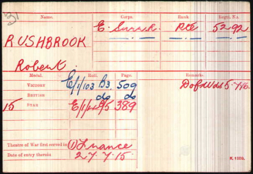 Robert Rushbrooke was born on Bradfield St George (Thingoe Q3-1883 4A:595), son of Benjamin