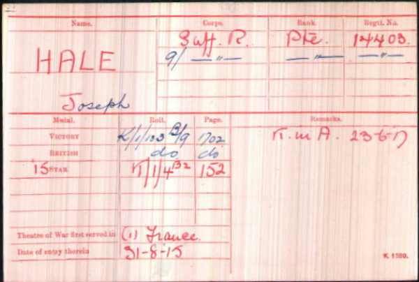 No.14403, Private, Joseph HALE