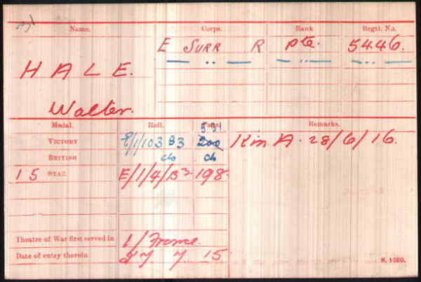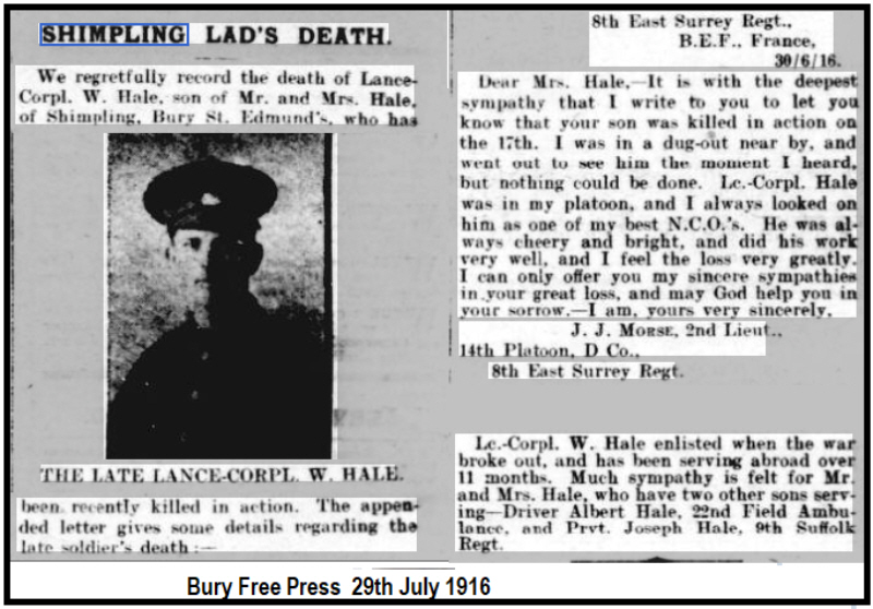 Walter Hale born in Shimpling (2nd qtr 1895 Sudbury 4a:761 ) son of Barnard and Clara HALE (née MUSK)
