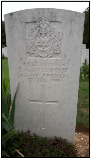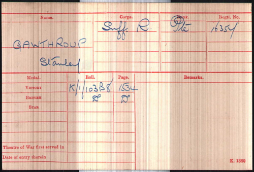 Stanley George GAWTHROUP was born in Stow cum Quy in 1895 (Chesterton Q4-1895 3B:438), son of Robert and Elizabeth GAWTHROUP (née BIGGS).