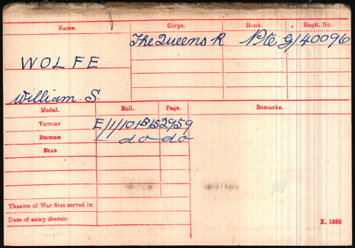 No.G/40096, Lance Corporal, William Samuel WOLFE